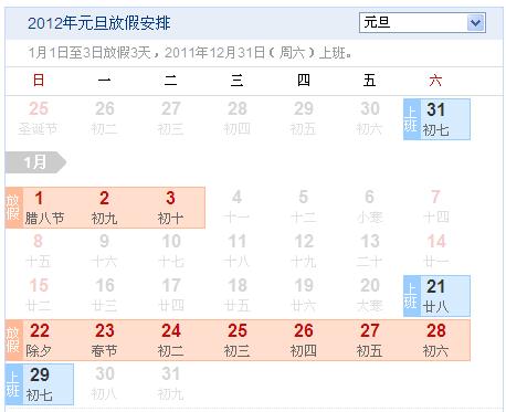 2012年放假安排時間表 2012年元旦放假安排